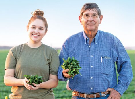 For more than a century, the Ritchie family has been growing spinach on their farm in La Pryor. Now in its fourth generation, the family’s legacy continues with Paige Ritchie working alongside her father, Ed Ritchie III. The family is proud to feed the community with nutritious Bloomsdale Spinach.
